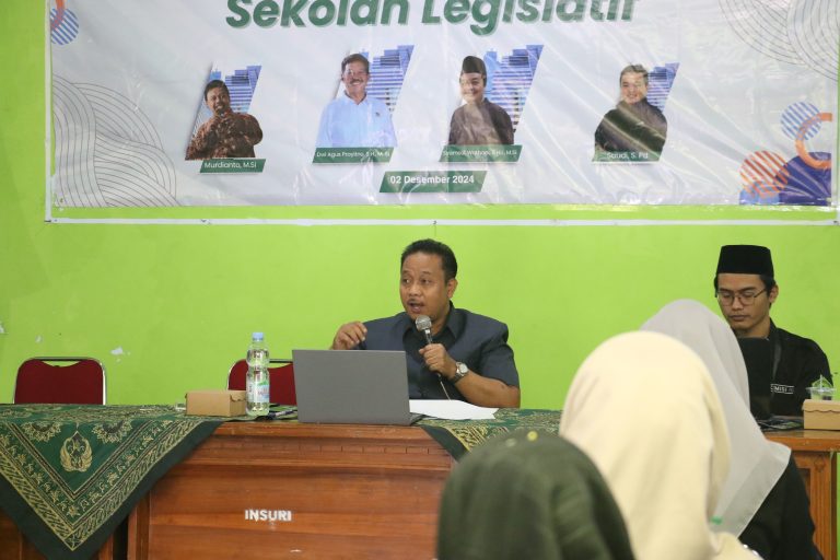 Ponorogo – Dalam rangka meningkatkan wawasan dan kompetensi mahasiswa di bidang legislatif, Senat Mahasiswa Institut Agama Islam Sunan Giri Ponorogo menyelenggarakan program Sekolah Legislatif untuk periode tahun 2024-2025. Acara ini digelar pada hari Senin, 2 Desember 2024, bertempat di Ruang Aswaja, kampus IAI Ponorogo.