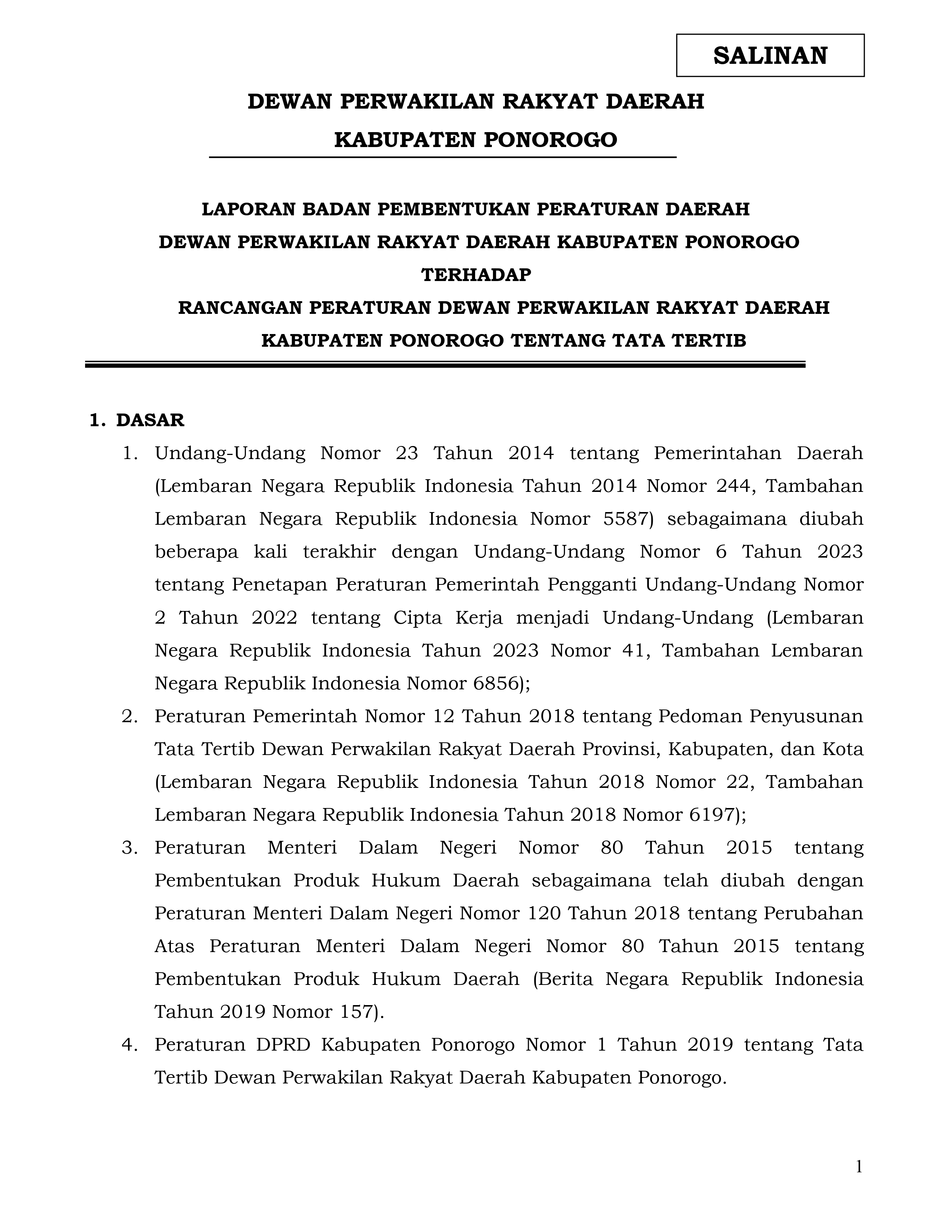 | Judul | Laporan Bapemperda Tentang Tata Tertib DPRD Kabupaten Ponorogo Tahun 2025 |
