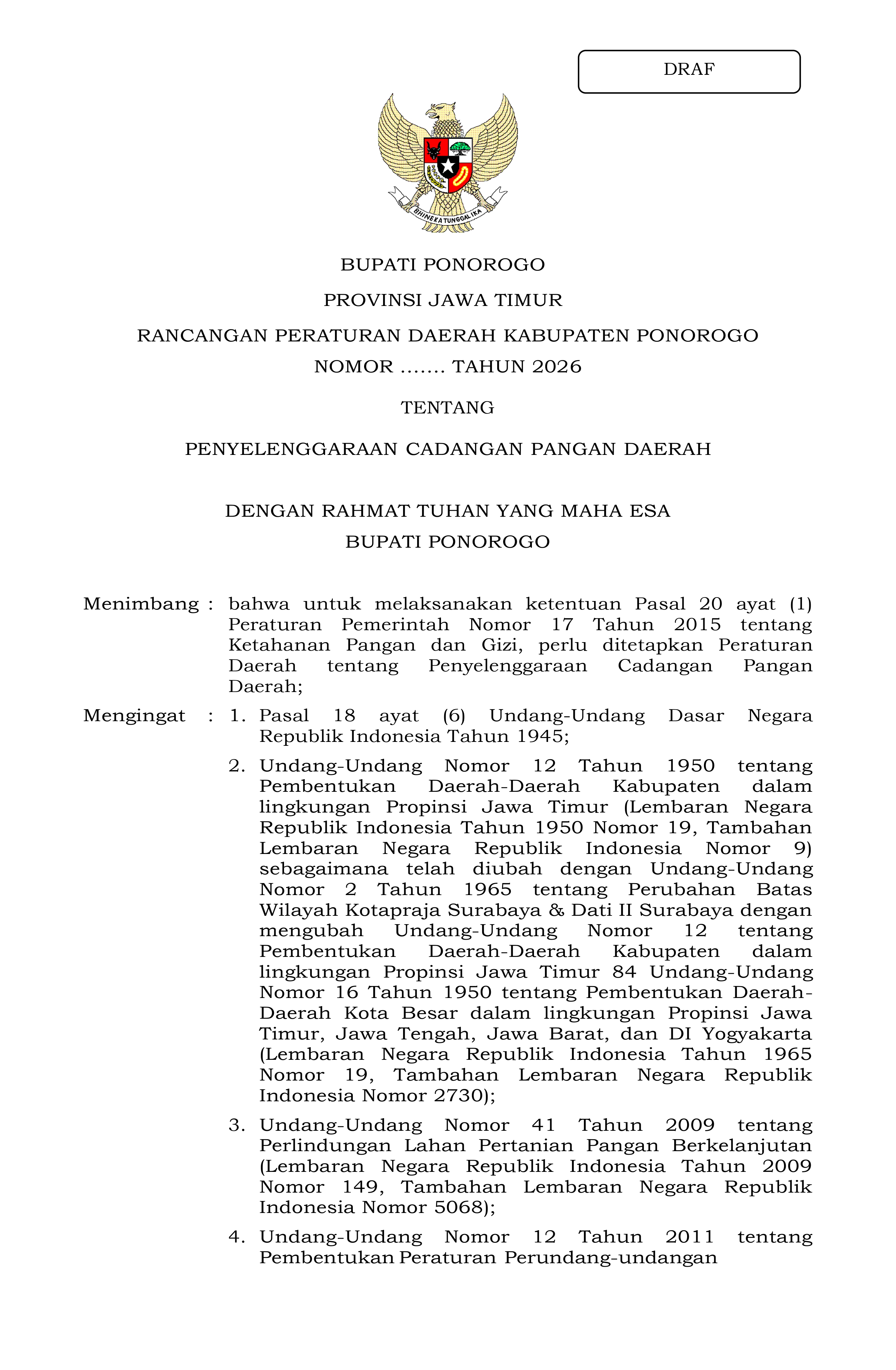| Judul | Rancangan Peraturan Daerah tentang Cadangan Pangan Daerah |
